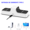 2. Cargador dual: Permite cargar dos controladores al mismo tiempo mediante conexión USB tipo C.
